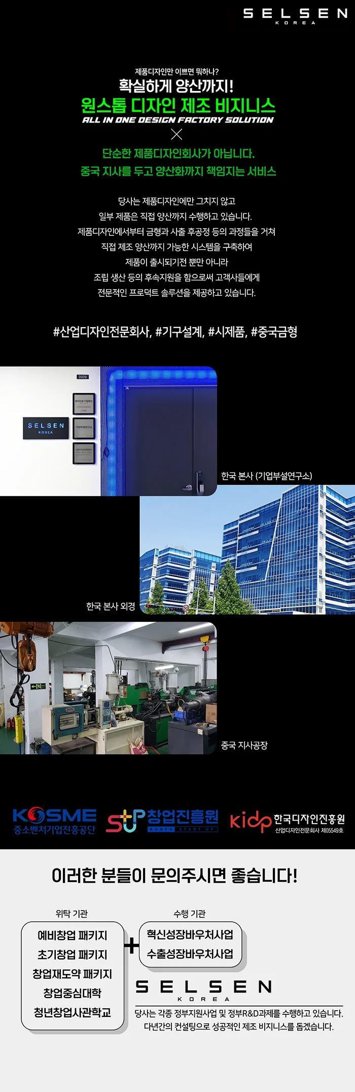 셀센코리아는 제품디자인에만 그치지 않고 일부 제품은 직접 양산까지 진행합니다.