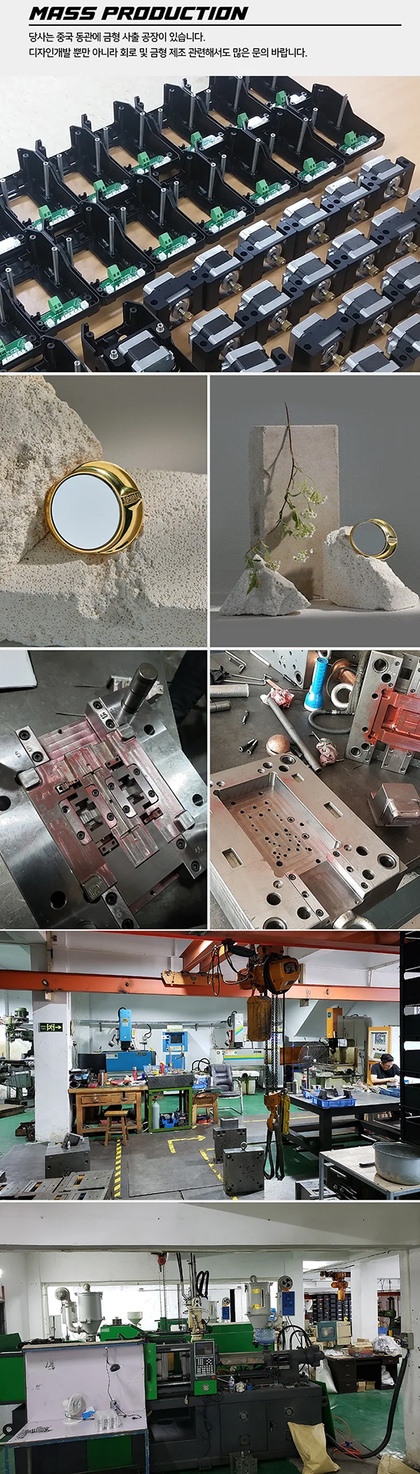 제품디자인에서부터 금형과 사출 후공정 등의 과정들을 거쳐 직접 제조 양산까지