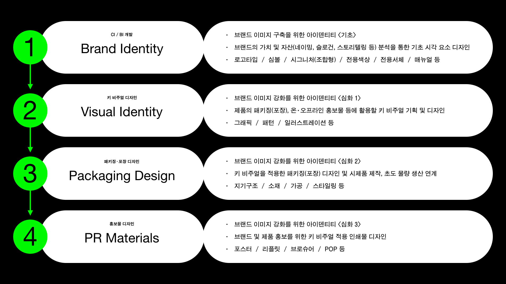 미적 감각 등 이면의 의미를 재해석, 표현하여 브랜드의 가치, 즉 내적인 본질이 잘 조화된 디자인을 기획하고 개발합니다.